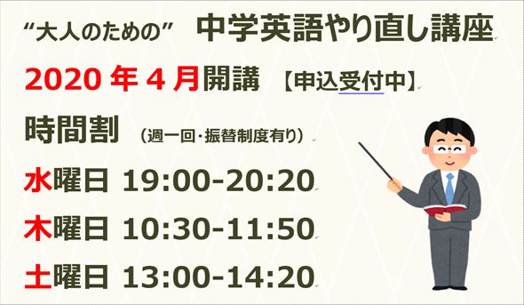 TOP 大人英会話 中学生英会話 子供英会話 月謝・費用 講師 アクセス About Us よくある質問 メールマガジン LINK集 お問い合わせ Blog