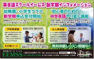 TOP 大人英会話 中学生英会話 子供英会話 月謝・費用 講師 アクセス About Us よくある質問 メールマガジン LINK集 お問い合わせ Blog